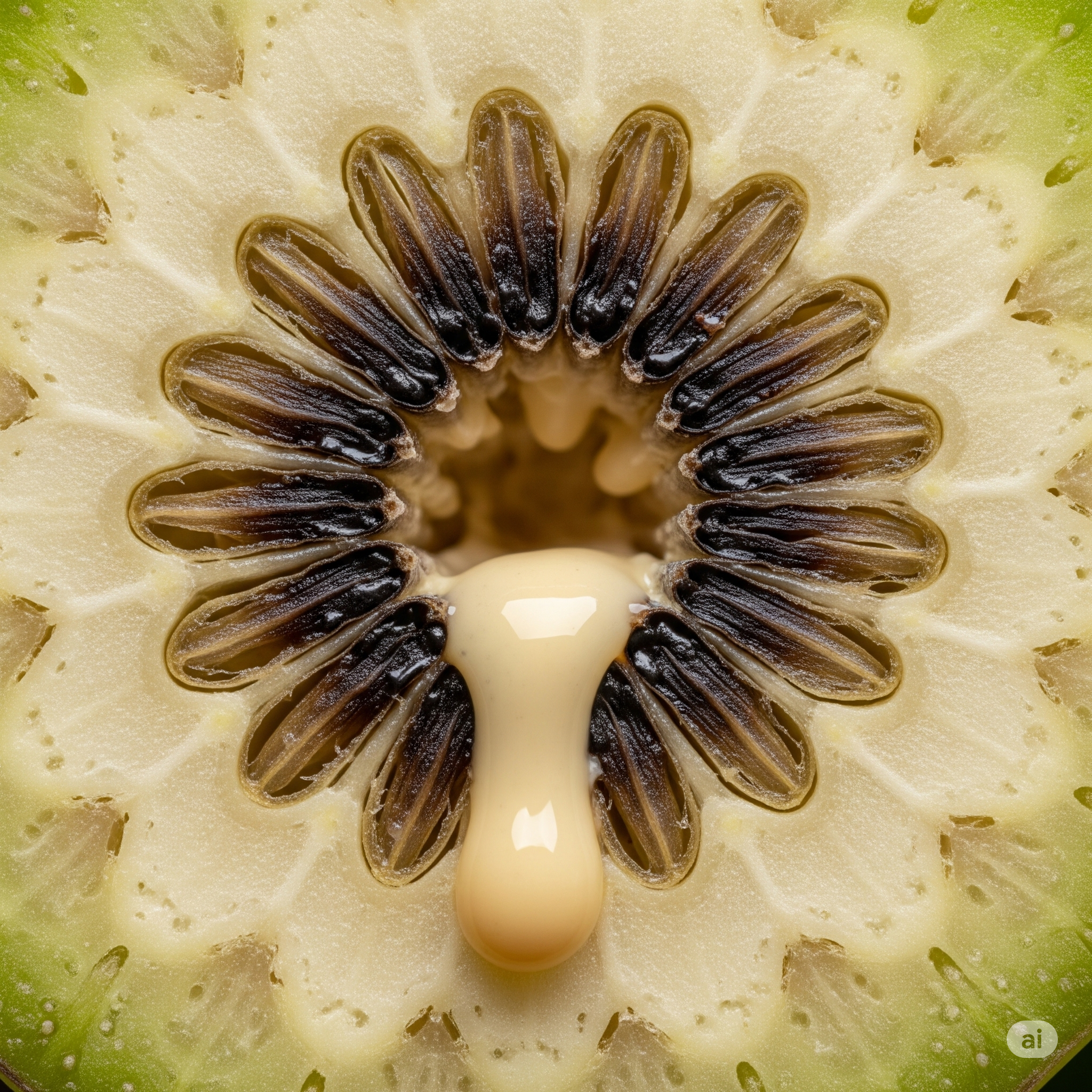 2. Décoloration Vasculaire Interne et Exsudat Bactérien : En faisant une coupe transversale dans le pseudo-tronc, le rhizome (corme) ou le pétiole d’une plante infectée, on observe une décoloration caractéristique, brun à noir, des faisceaux vasculaires. En pressant le tissu coupé, ou simplement en observant après quelques minutes, un exsudat bactérien crémeux, laiteux ou jaunâtre peut apparaître, ce qui est un signe distinctif de la maladie. Cet exsudat contient des millions de bactéries.